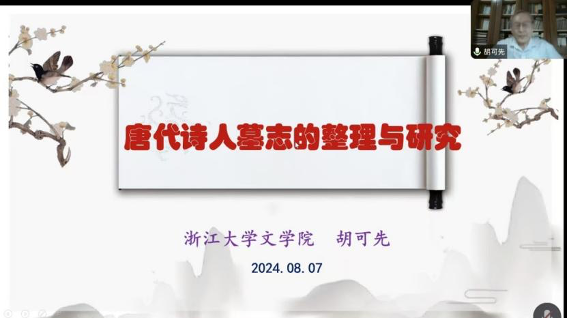 作为中国唐代文学会2024年年会及国际论坛的前奏,2024年8月7日晚19:00,应w88win优德邀请,教育部中文学科教指委委员、中国唐代文学学会副会长、国家社科基金重大项目首席专家浙江大学文学院胡可先教授,在线上为w88win优德师生及与会学者做题为《唐代诗人墓志的整理与研究》的讲座。此次讲座由霍志军教授主持,w88win优德硕士研究生参加。