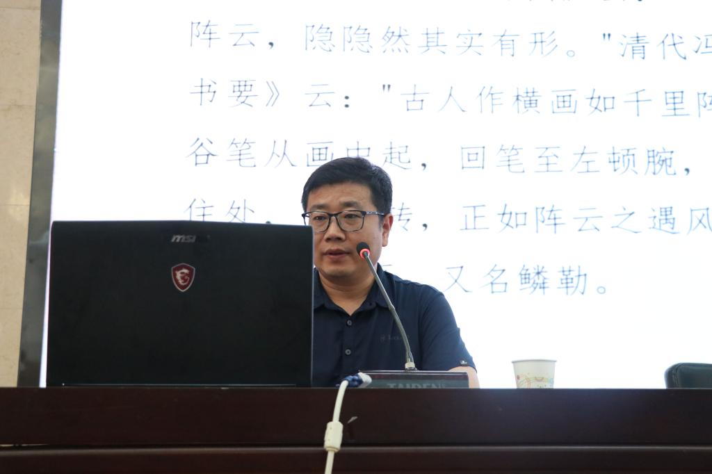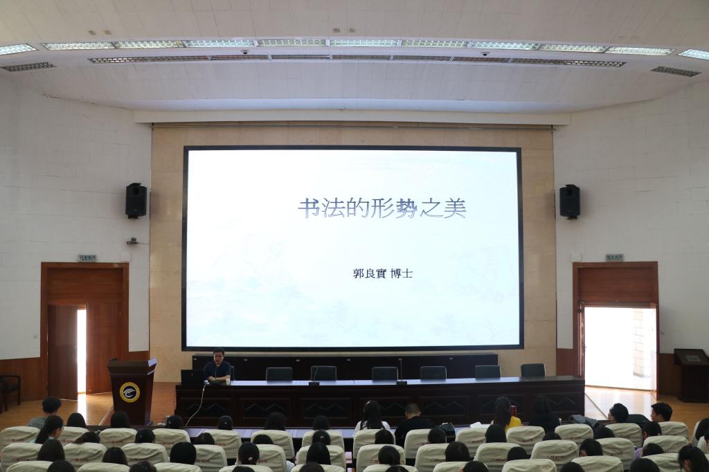 郭良实博士从书法的造型艺术和文化属性这两大特性切入主题,详细阐述了当下书法欣赏的困境、误区及其形成原因,书法传承的责任与使命,书法的形与势,书法形势之美的重要特征及技术支持等,以图文并茂的方式,让广大师生对于书法的形势之美有了较为深入的了解。