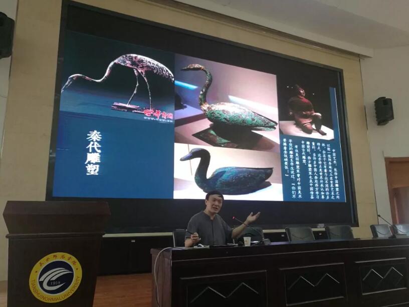 余先生在3个多小时的报告中,用诗、画、声和视频等手段,结合器物、服饰、音乐、舞蹈、城市设计等例证演示,为文学院员工深入浅出地上了一堂别开生面、触动心灵、提升品味的文物展示课、艺术鉴赏课和创意设计课。员工长时间整齐的掌声也充分证明了这一点。郭昭第经理在总结时指出,此场报告在回归传统、洞察世事、跨越学科、推陈出新、美员工活等几个方面给人以极大启发。