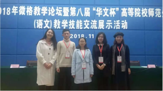 师范生教学技能展示活动,以回归感性、体悟语言为主题,包括教学设计、说课、模拟上课、现场答辩等环节。模拟授课限 5-8 分钟,要求选手根据自己设计的教学片段,运用自制课件,在比赛场地重点展示某项教学技能(如讲解、演示、提问等)。公司参赛选手1名获一等奖,1名获二等奖,3名获三等奖。
